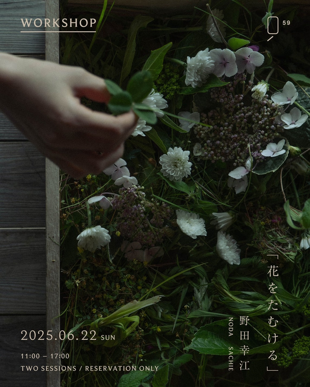 季節の草花を囲んで、おしゃべりをしながら手を動かすような、気軽な場になればと思っています。棺に集まっていく別れ花の美しさに倣い、各々の手からひとつの場所へ向かっていく草花と行為のうちに、人と花、手向けることについて想いを巡らせる試みです。