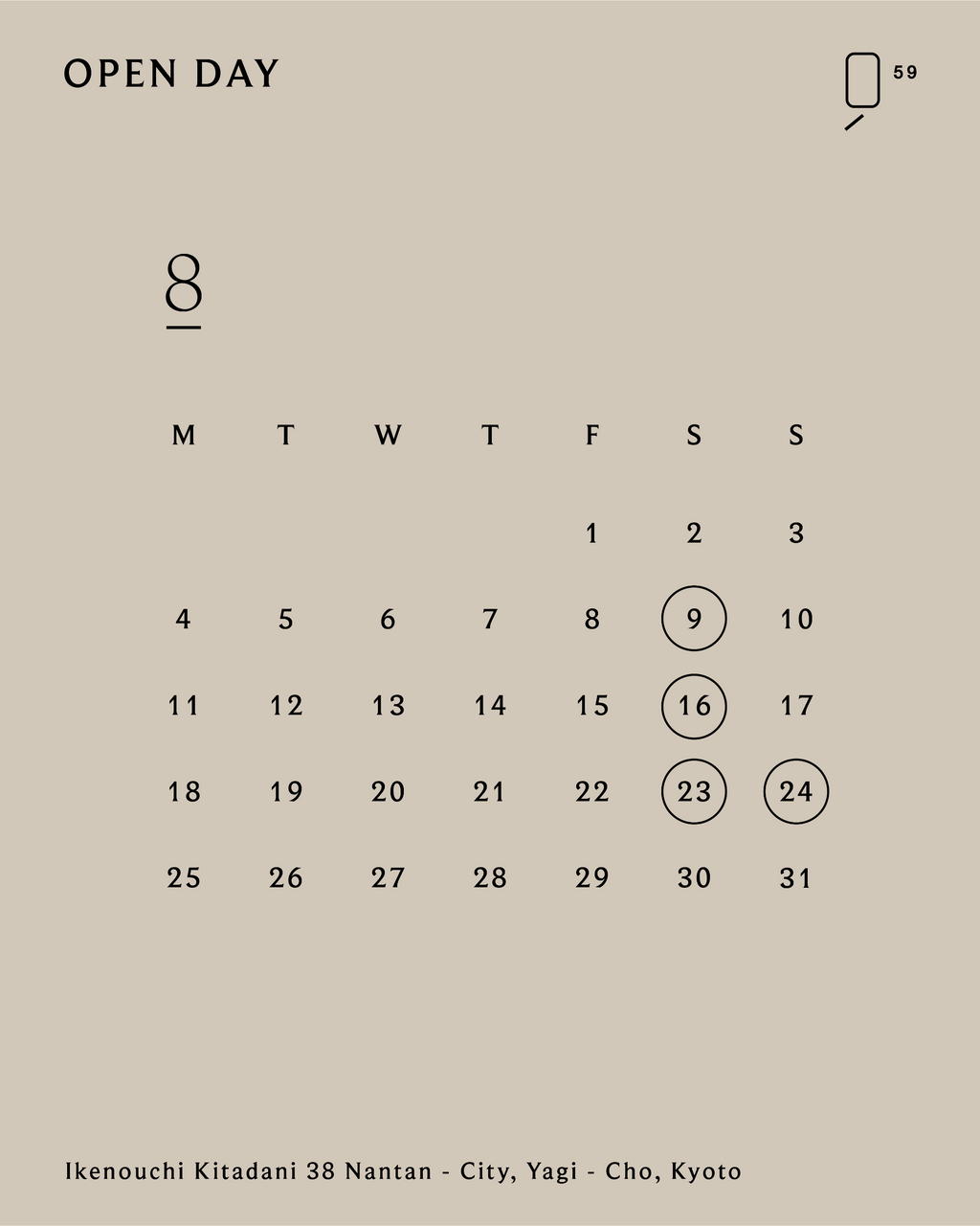 August 9 (Sat), 16 (Sst), 23 (Sat), and 24 (Sun).